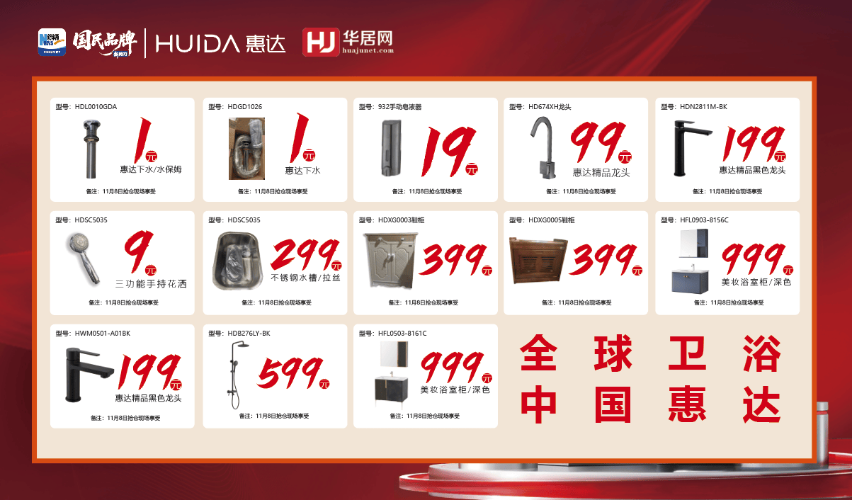 作为中国卫浴行业的领先品牌,惠达始终坚持以高品质产品和贴心服务赢得信赖。本次活动中的所有商品均经过严格质检,确保你购得放心、用得安心。我们更提供全方位售后支持,包括免费安装、维修与退换货服务,让你购物全程无忧,尽享安心体验。